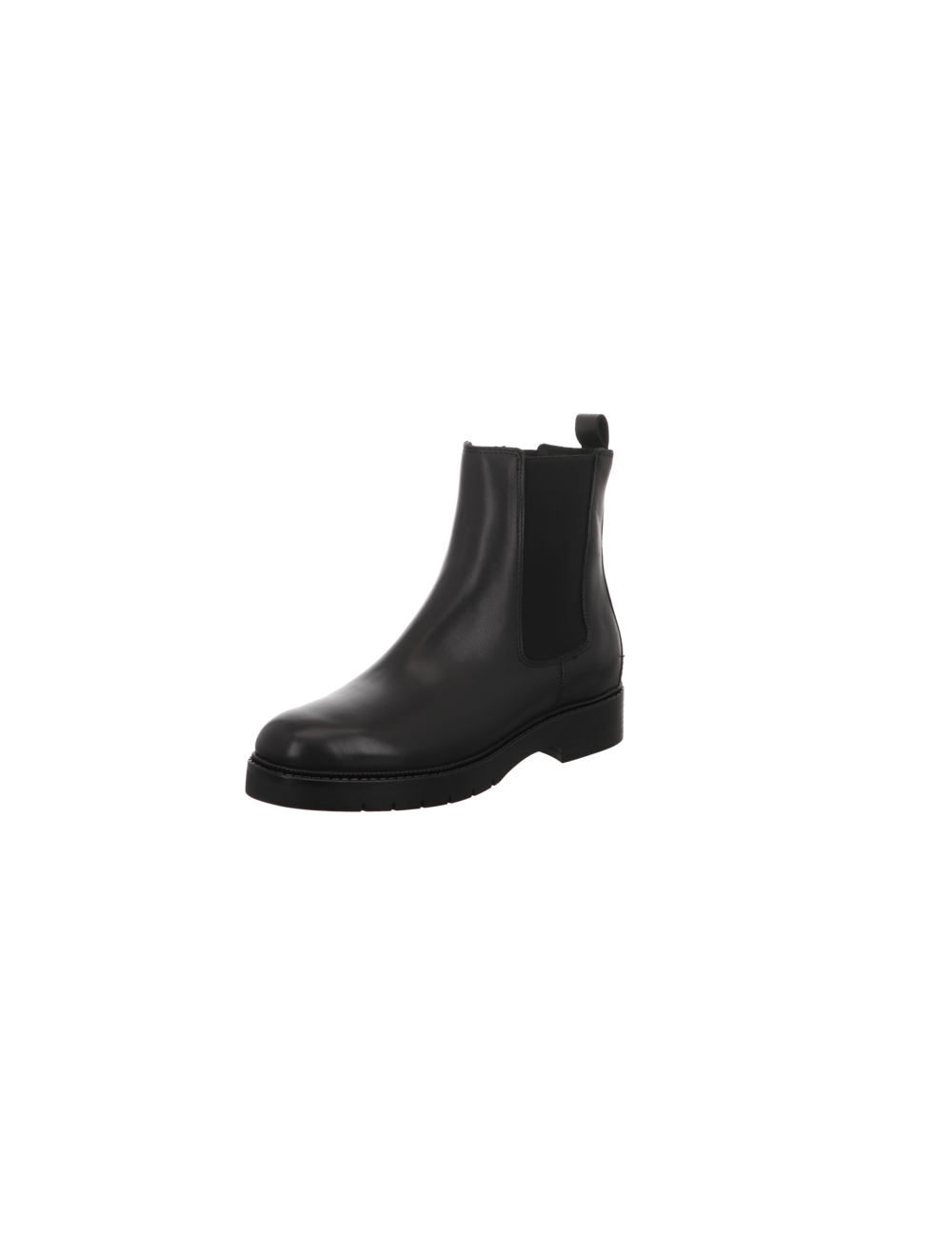 Chelsea Boots in schwarzen Glattleder mit Gummisohle.