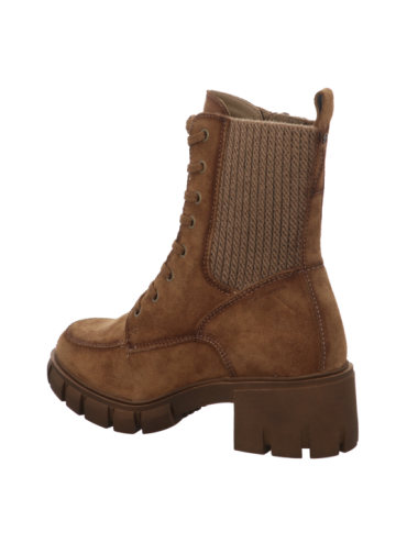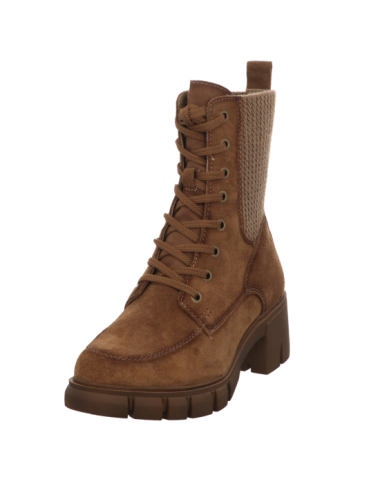 Schnürstiefelette in braunen Rauhleder mit Gummisohle.