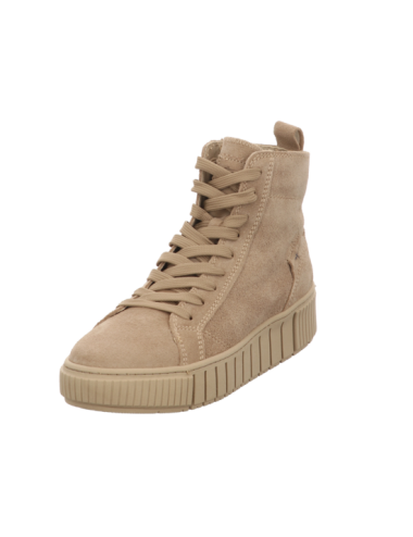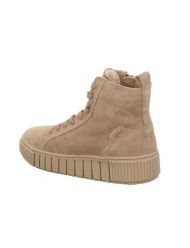 Schnürstiefelette in beigen Rauhleder mit Plateaugummisohle.