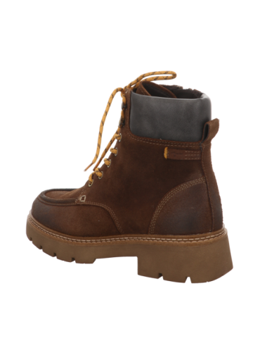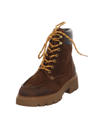 Schnürstiefelette in braunen Rauhleder mit Gummisohle.