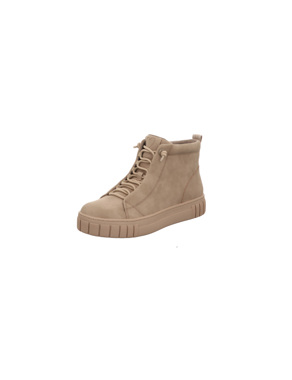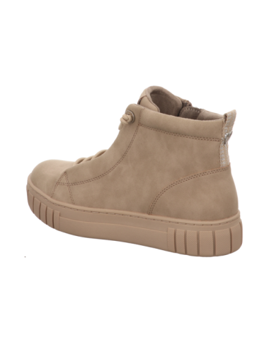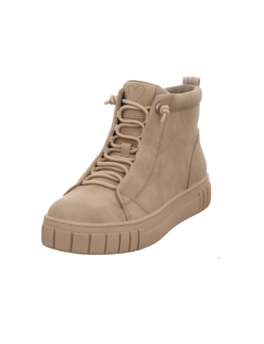 Schnürstiefelette in beigen Kunstleder mit Gummisohle.