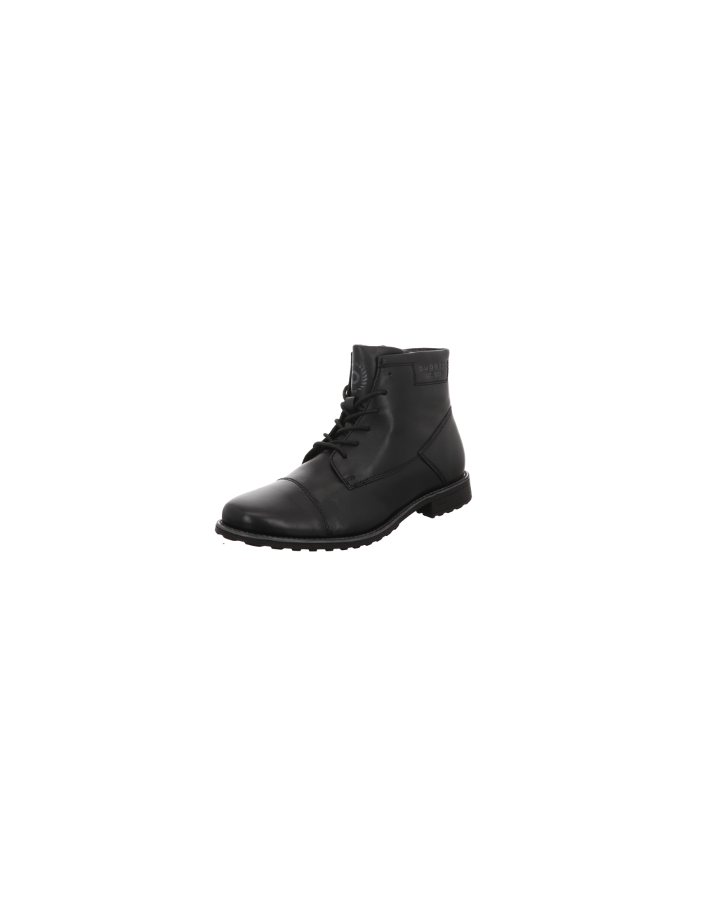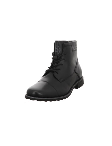 Schnürstiefelette in schwarzen Glattleder mit Gummisohle.