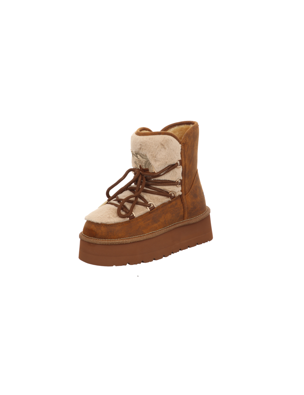 Stiefelette in beigen Rauhleder mit Plateaugummisohle.