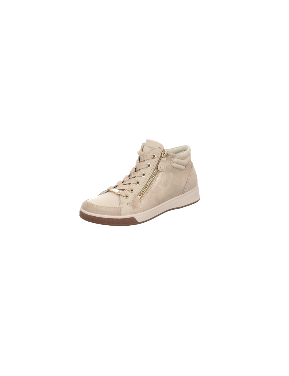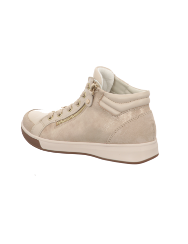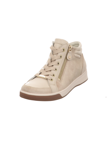 Knöchelhoher Sneaker in beige kombinierten Glattleder mit Gummisohle.