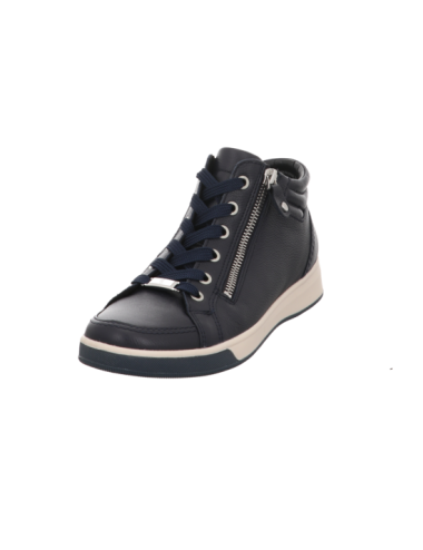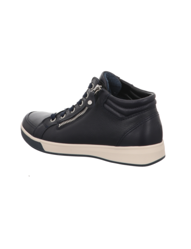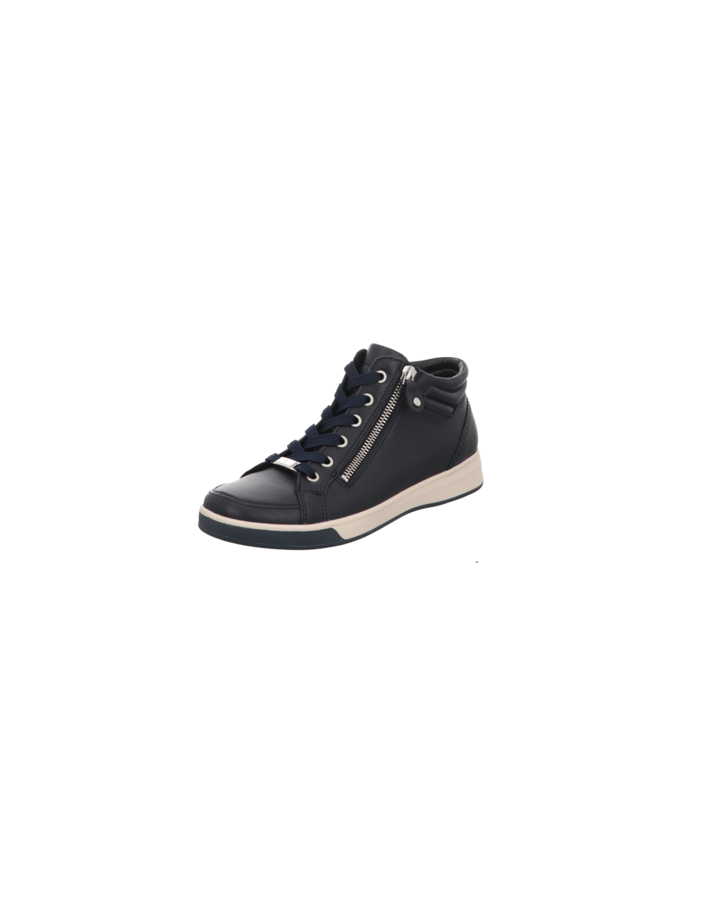 Knöchelhoher Sneaker in blauen Glattleder mit Gummisohle.