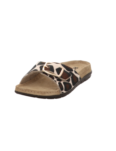 Tieffußbettpantoffel in braun kombinierten Fell mit Pu - Sohle.