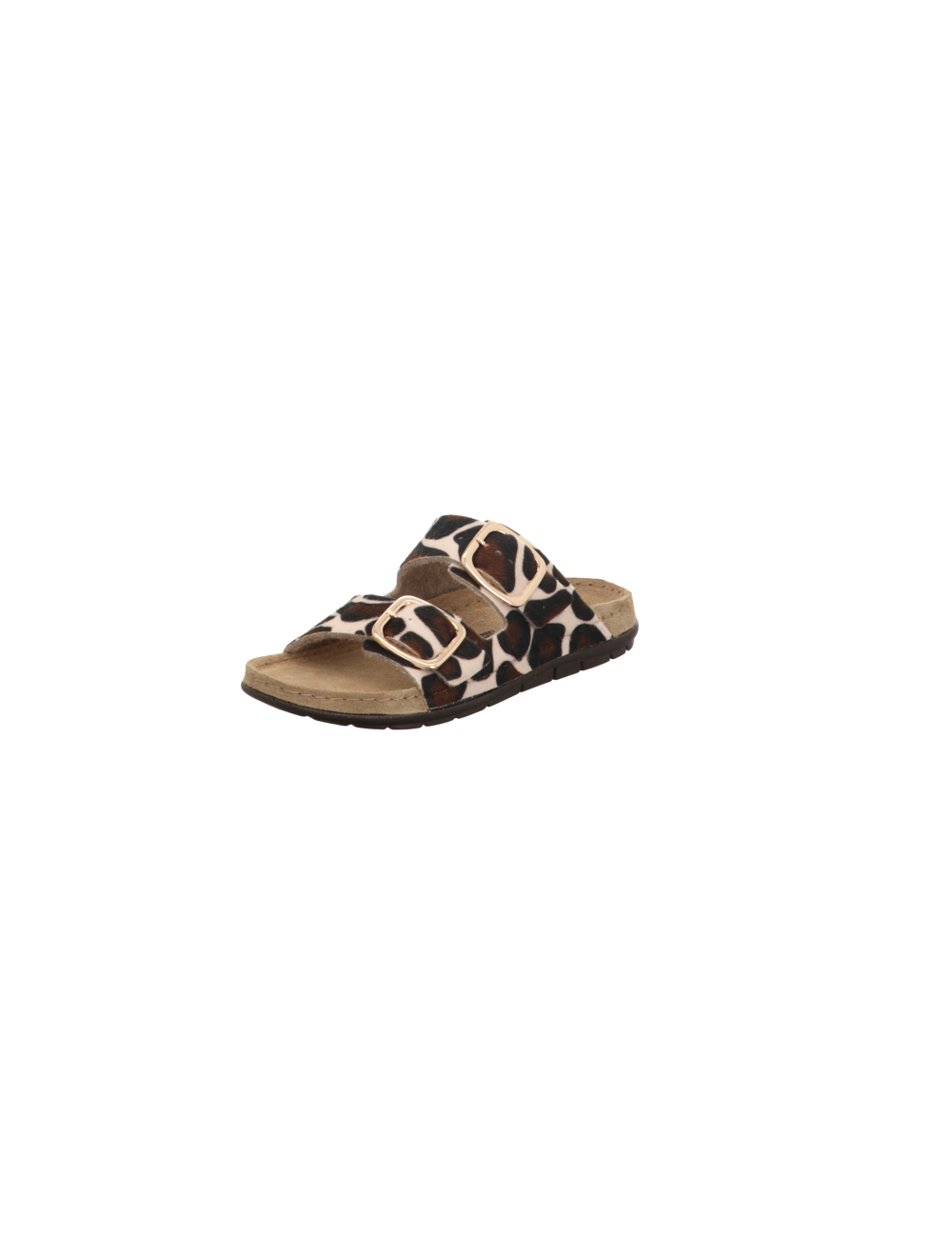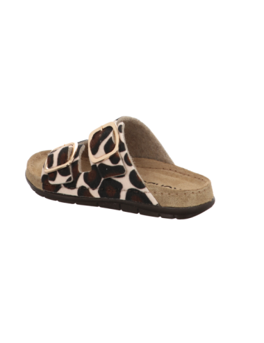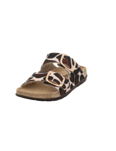 Tieffußbettpantoffel in braun kombinierten Fell mit Pu - Sohle.