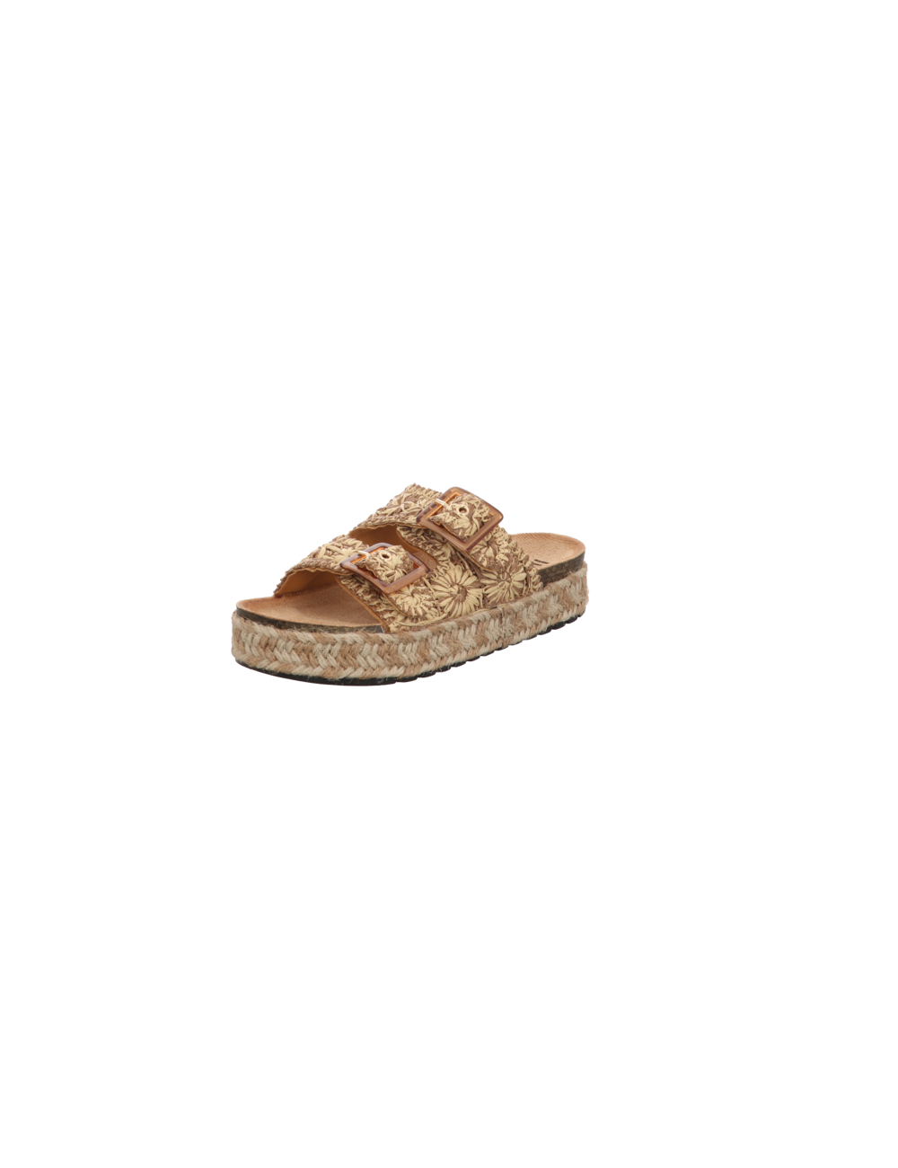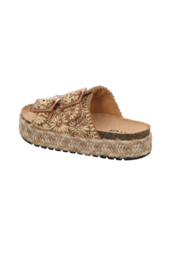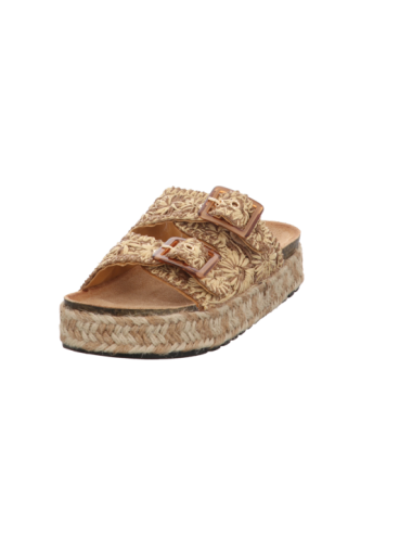 Tieffußbettpantoffel in braun kombinierten Textil mit Plateausohle.