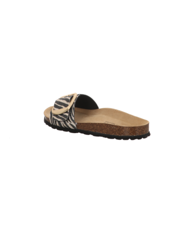 Tieffußbettpantoffel in schwarz kombinierten Kunstleder mit Pu - Sohle.