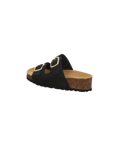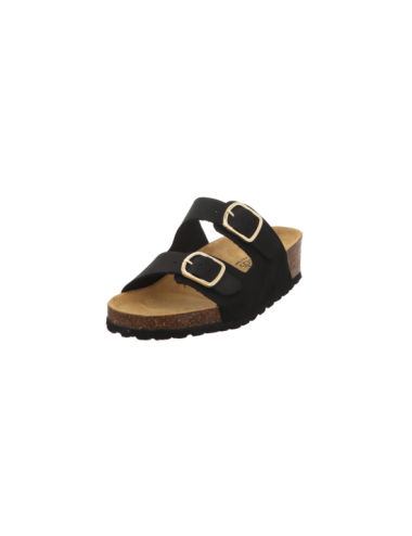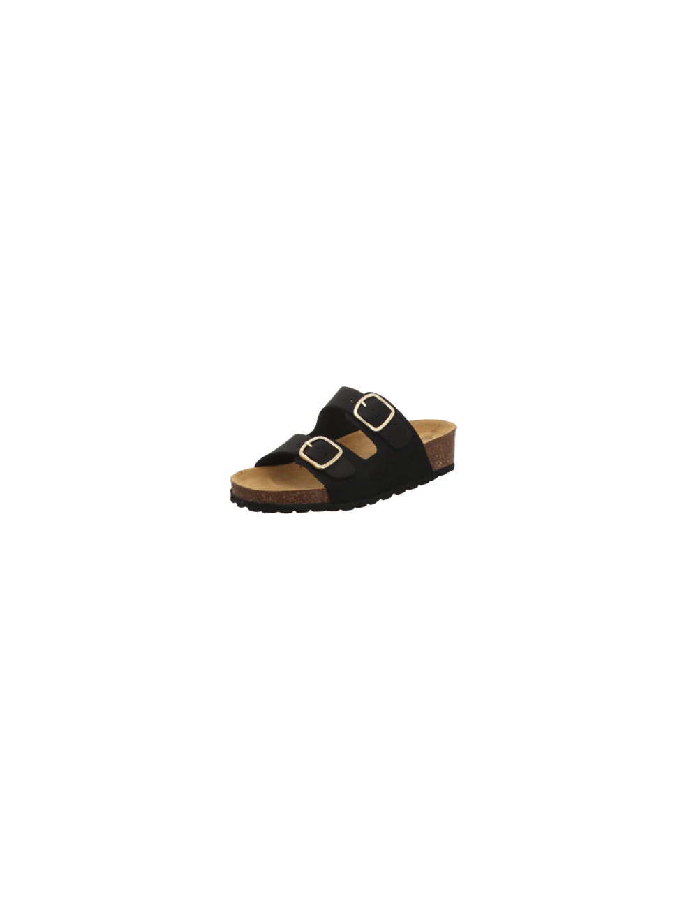 Tieffußbettpantoffel in schwarzen Rauhleder mit Pu - Sohle.