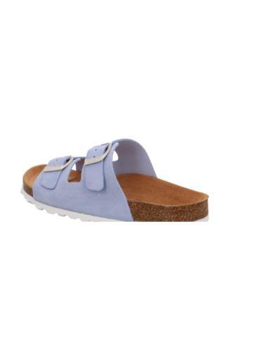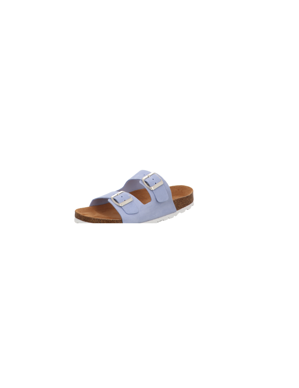 Fußbettpantoffel in hellblauen Rauhleder mit Pu - Sohle.