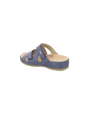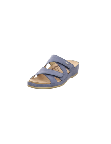 in jeansblauen Glattleder mit zwei Klettverschlüßen und Pu - Sohle.