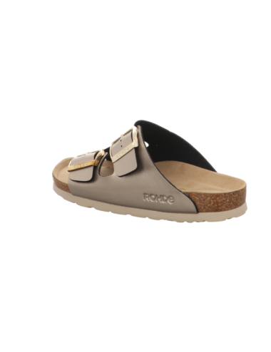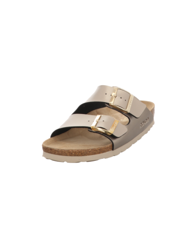 Bequemer Fußbettpantoffel in goldener Glattlederoptik mit Pu - Sohle.