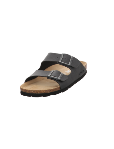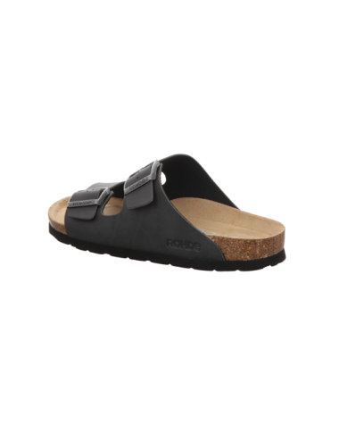 Bequemer Fussbettpantoffel aus grauen Glattleder mit zwei Schnallen und Pu - Sohle. Rohde - Qualität zum Wohlfühlen