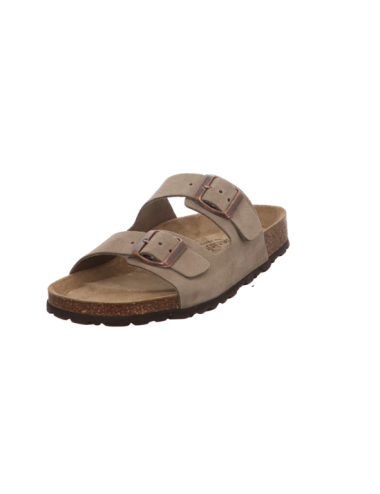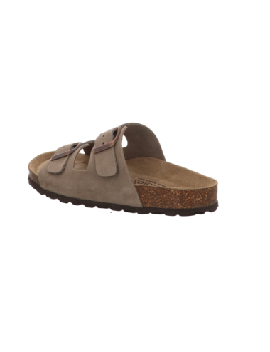 Tieffußbettpantoffel in schlammfarbiger Rauhlederoptik mit Pu - Sohle.
