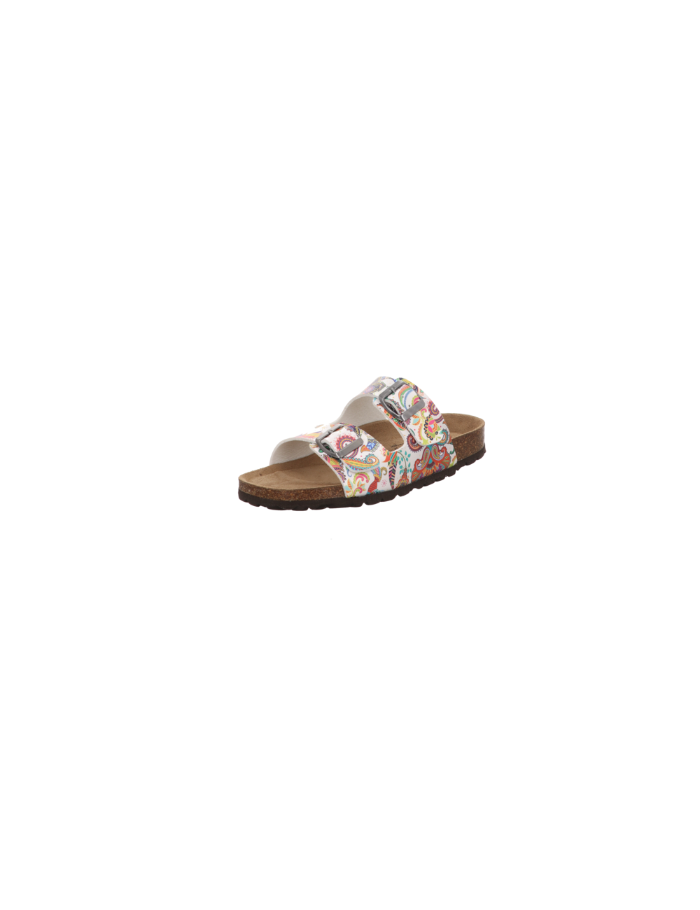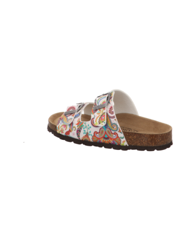Tieffußbettpantoffel in weiss kombinierter Glattlederoptik mit Pu - Sohle.