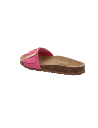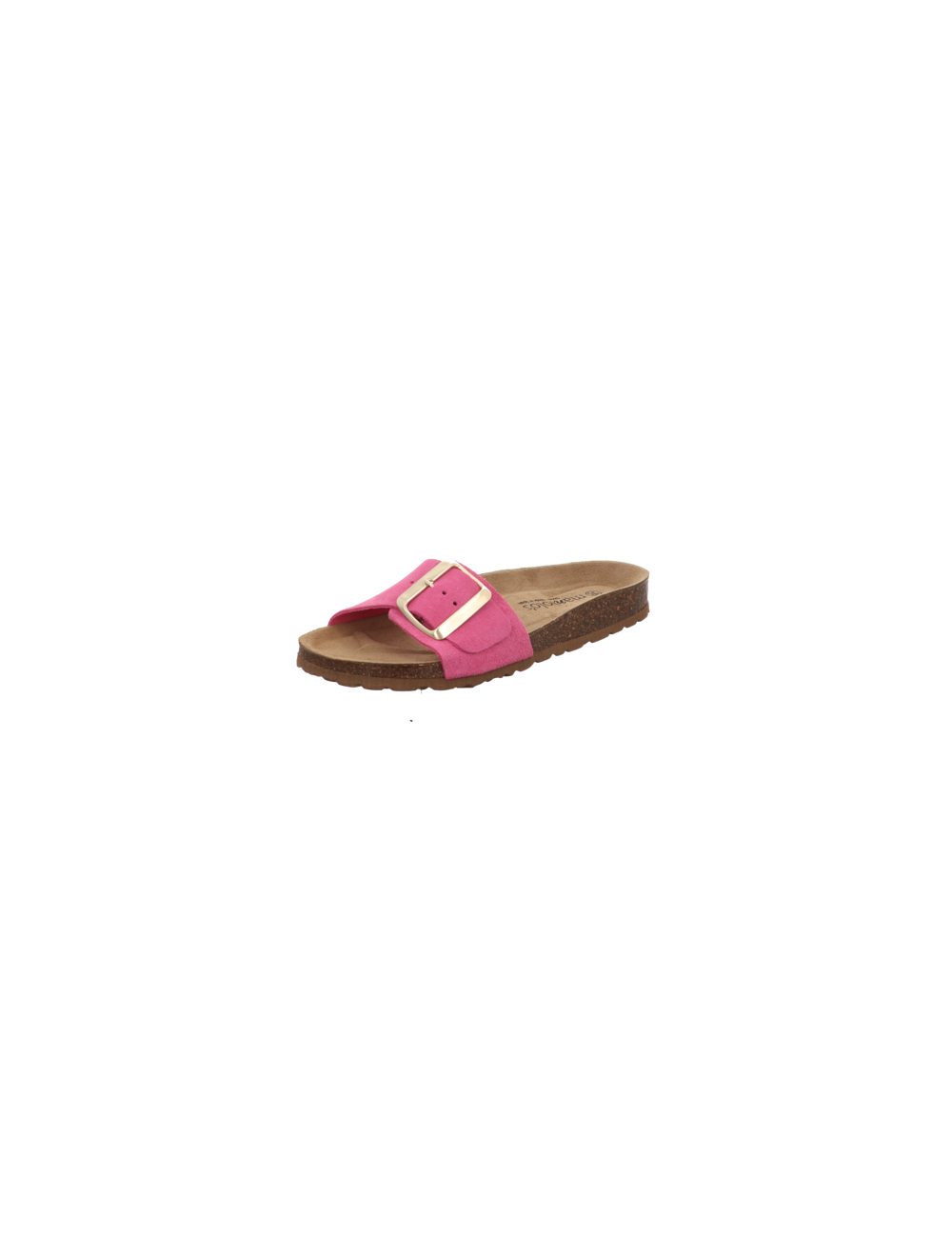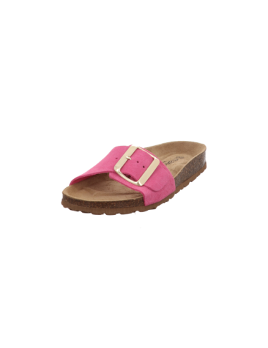 Tieffußbettpantoffel in pinker Rauhlederoptik mit Pu - Sohle.