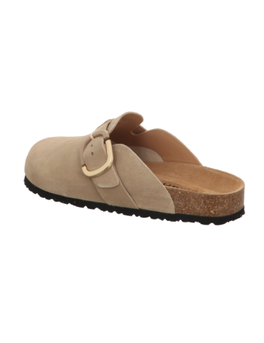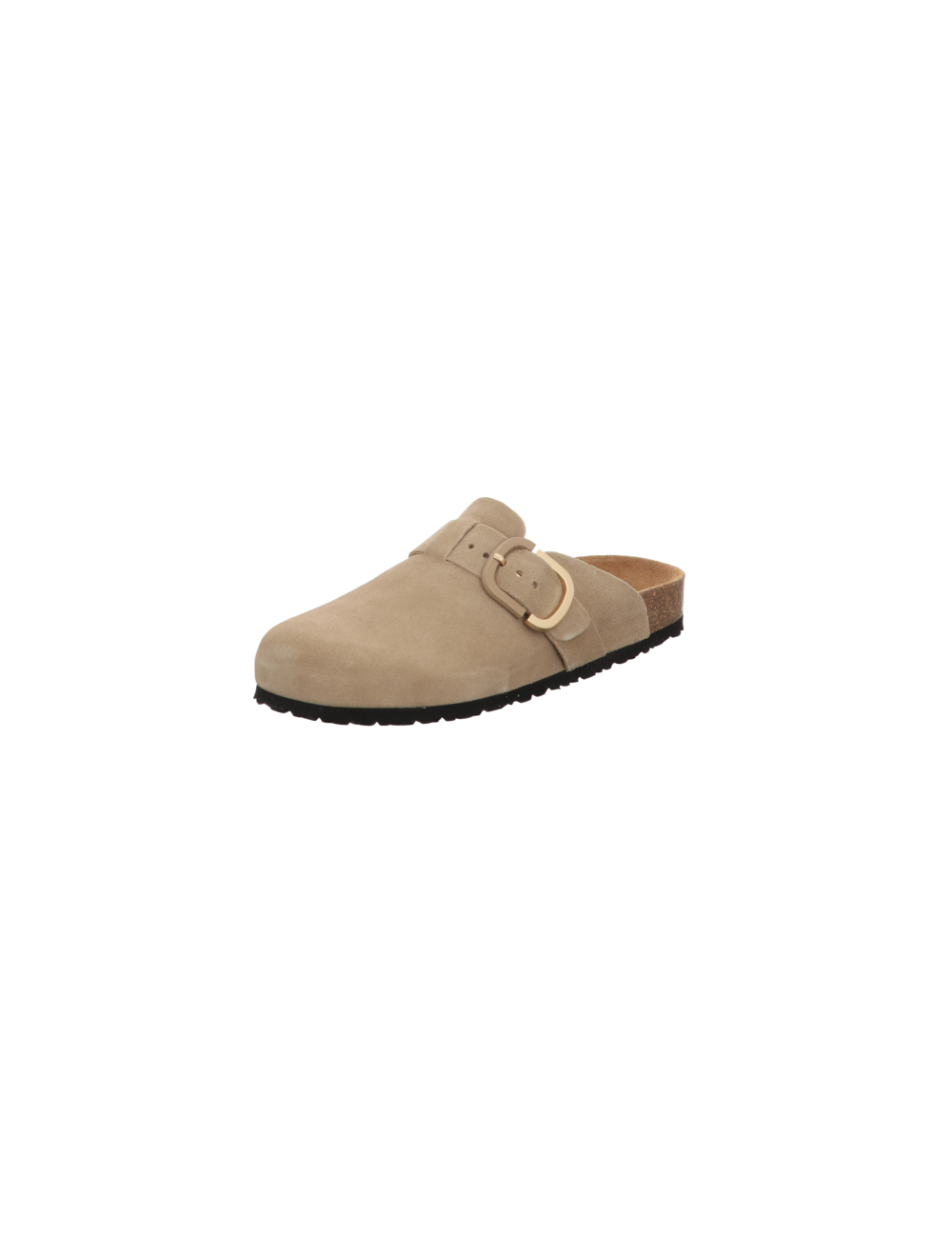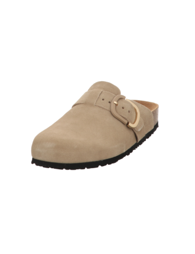 Tieffußbettpantoffel in beigen Rauhleder mit Pu - Sohle.