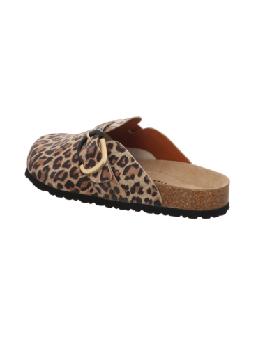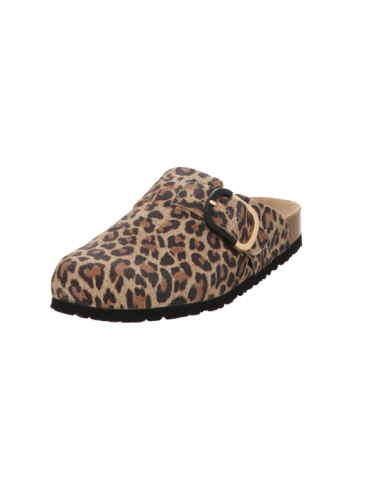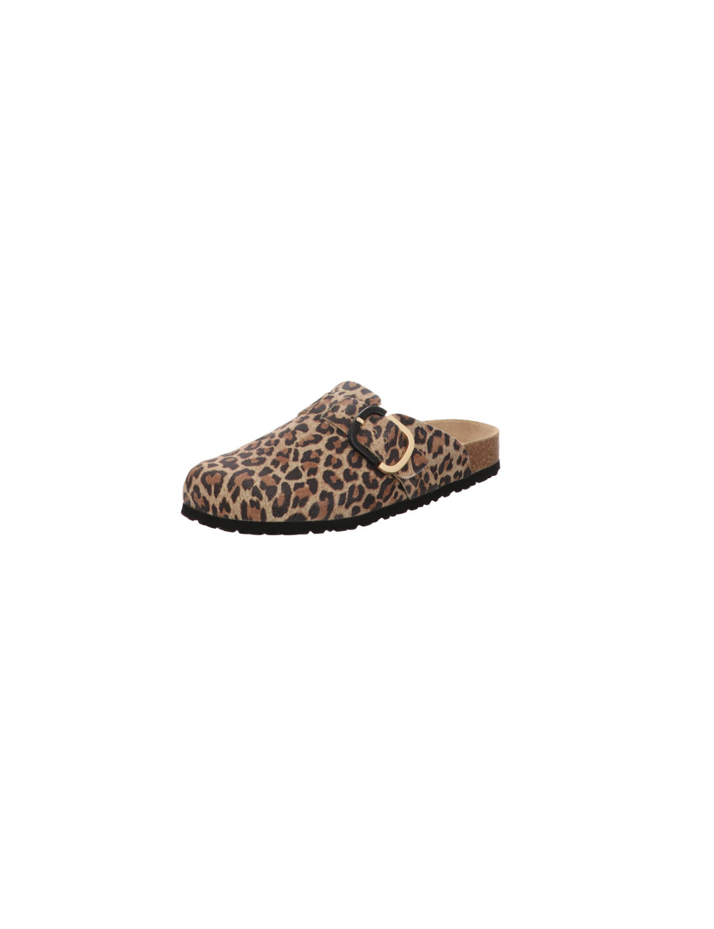 Tieffußbettpantoffel in beige kombinierten Rauhleder mit Pu - Sohle.