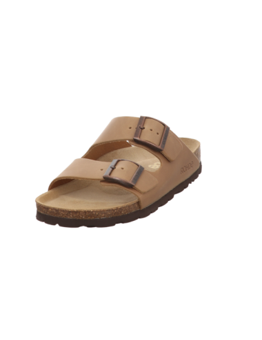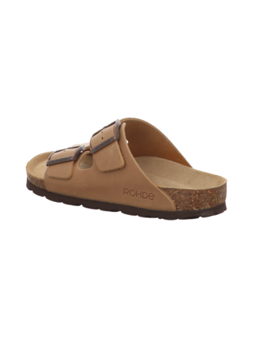 Tieffußbettpantoffel in beigen Glattleder mit Pu - Sohle.