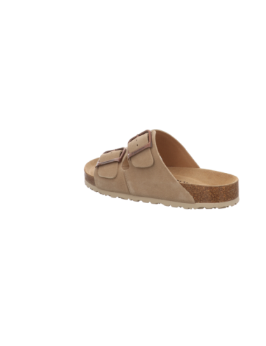 Tieffußbettpantoffel in hellbraunen Rauhleder mit Pu - Sohle.
