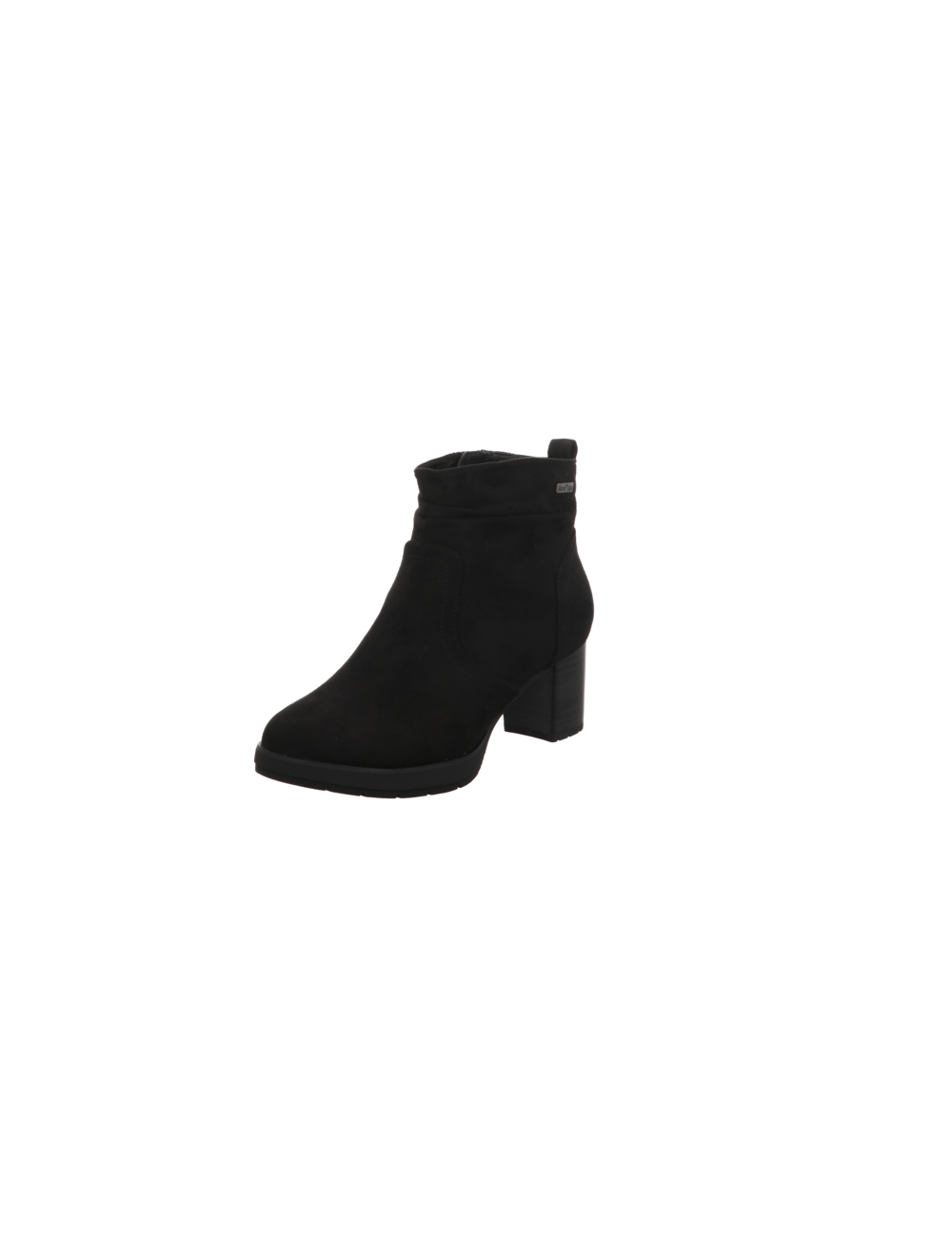 Stiefelette in schwarzen Rauhleder mit Tex - Membrane und einer Absatzhöhe von ca. 5,5 cm und Pu - Sohle.