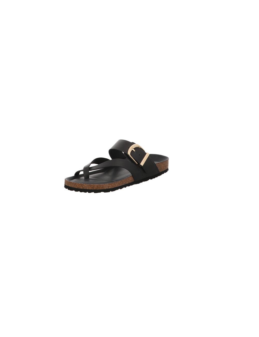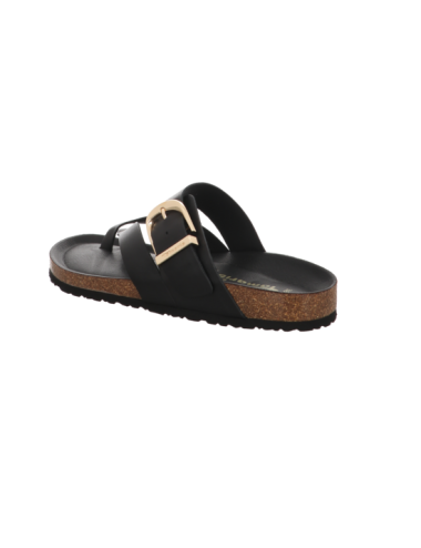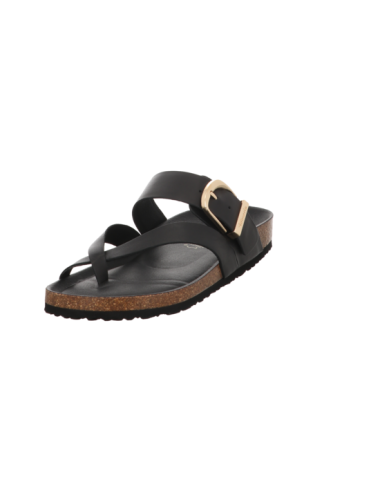 Zehentrennerpantoffel in schwarzen Glattleder mit Tieffußbett und Pu - Sohle.